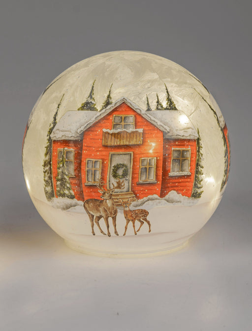 Deko Glaskugel mit LED Licht + Timer in geeister Optik mit aufgedruckter Winterlandschaft Ø 12cm Batteriefach für 3 x AA Batterien in der Lieferung...