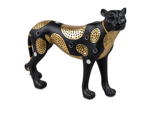 Gepard Stehend aus dem Hause Formano schwarz-gold 35 x 24cm aus Kunststein gefertigt  und mit Spiegel-Elementen verziert, handbemalt