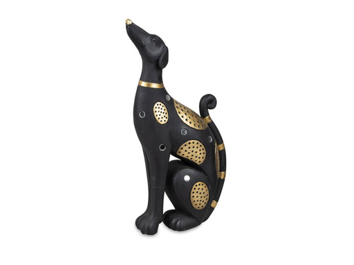 Hund Stehend aus dem Hause Formano schwarz-gold 35x24cm aus Kunststein gefertigt und mit Spiegel-Elementen verziert, handbemalt