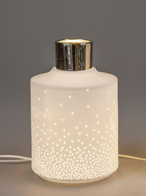 Lampe aus weissen Porzellan gefertigt und mit Durchbruch und glänzendem, silbernem Element  veredelt Marke: Formano Ø 18cm H: 26cm Fassung: E14,...