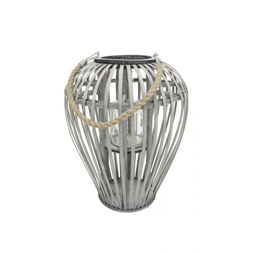 Holz Weide Laterne mit Glaseinsatz aus dem Hause GILDE H: 26cm Ø 24cm Farbe: Grau