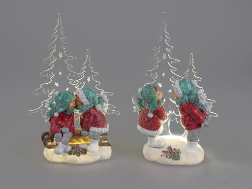 Kinderpaar + Acrylbaum mit LED-Licht + Timer 32cm aus Kunststein gefertigt und handbemalt  3x AAA Batterien 1,5V