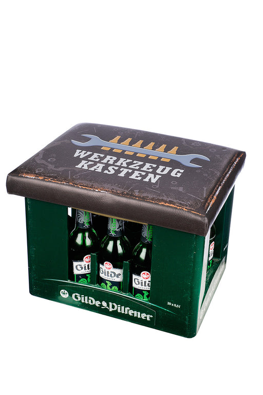 Sitz-Polster mit Spruch aus dem Hause GILDE "Werkzeugkasten" passend auf alle genormte Bier + Coca-Cola kästen, Karlsberg, Bitburg Größe: B.: 44 cm...