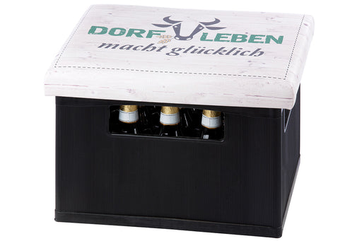 Sitzpolster für Getränkekisten, "Dorfleben macht glücklich"