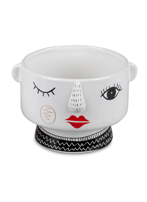 Deko-Schale mit Gesicht Ø 12cm  x H:10cm  glasiertem Steingut mit Lithografie verziert
