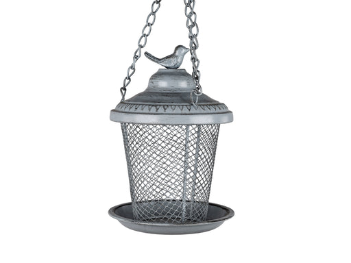 Metall Vogelfutterhaus aus dem Hause Formano hängend 15 x 20 cm  Gesamtlänge mit Kette 48cm Antik-grau