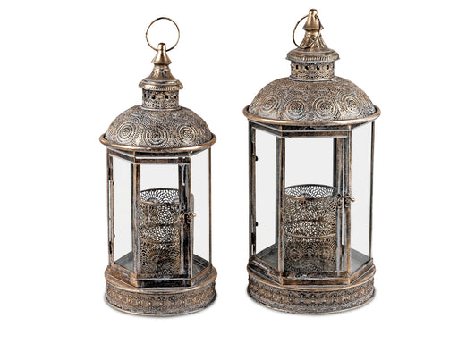 Laterne aus Metall mit Durchbruch, antik-gold Ø 26cm x H:54cm Metall-Einsatz, klaren Glasscheiben und Tür zum Öffnen Die kleinere Lampe finde...