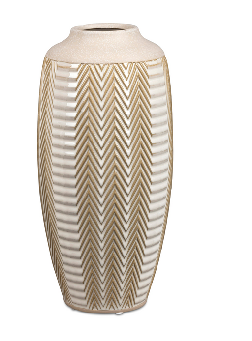 Boden-Vase  aus Keramik mit matter Oberfläche und goldenem Element Farbe: Sand-Gold Ø 20 x H: 44cm Boden mit Filz-Sticker Lieferung ohne Blumendeko