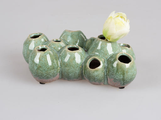 Schicke Loch-Vase Material: Keramik Farbe: Organic-grün 21 x 12 x 7 cm Handgefertigt
