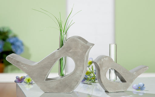 Gilde Vögel 2er Set als Blumenvase – Zement-Deko mit Reagenzglas, 23 cm & 15 cm