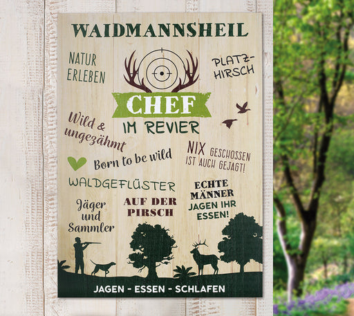 Gilde Wandbild „Waidmannsheil – Chef im Revier“ – Holzbild auf MDF, 50 x 36 cm
