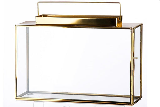 Windlicht Stäbe 30x46cm aus antik-goldenem Metall gefertigt, mit klarem Glaseinsatz