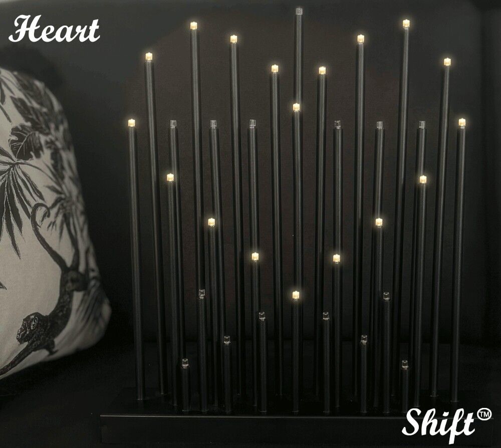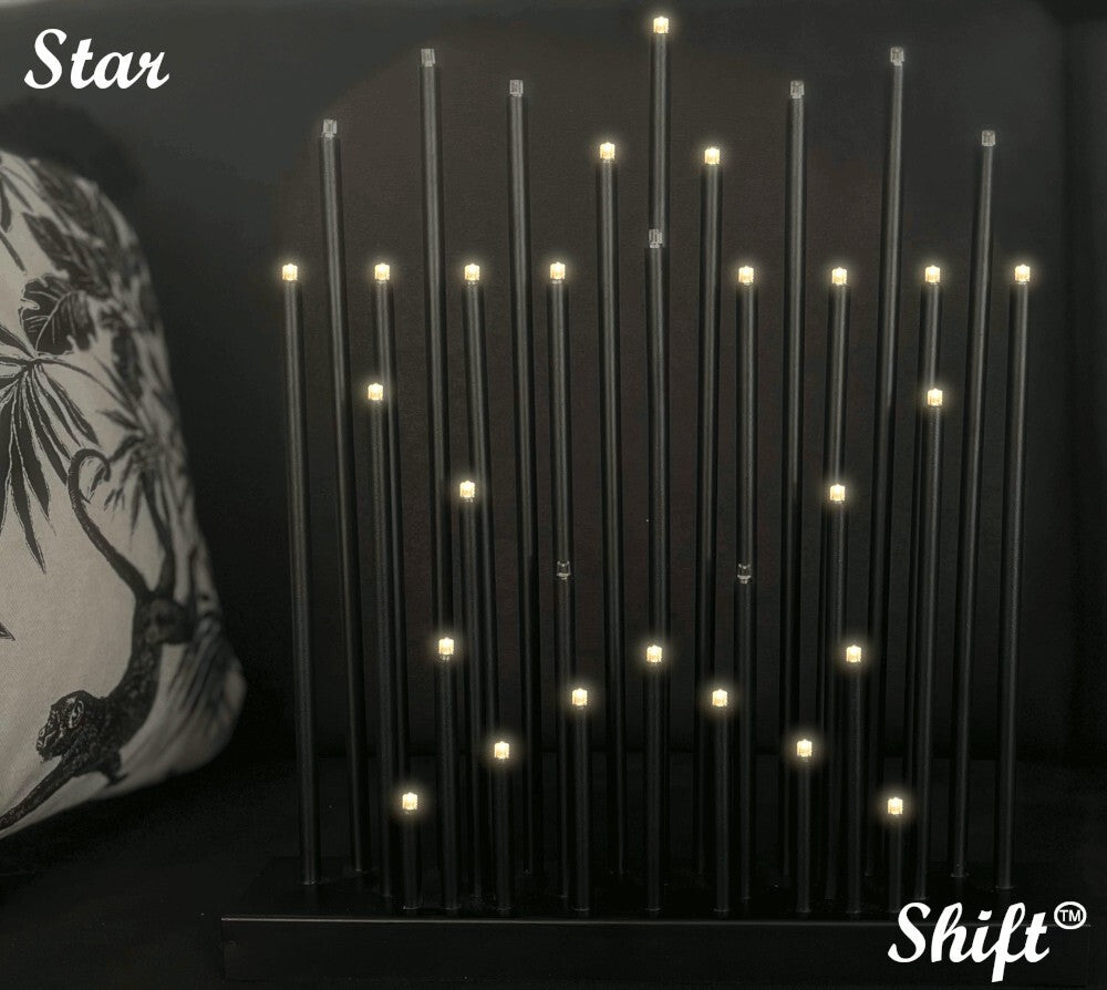 Verschiedene Facetten zeigt der Tisch- und Fensterleuchter "Shift". Diese absolute Weltneuheit zeigt ja nach Einstellung ein unterschiedliches Erscheinungsbild. Je nach Stimmung oder Anlass können Sie zwischen den Darstellungen eines Sterns oder Herz, als auch der attraktiven Vollbeleuchtung wählen. Batteriebetrieben oder aber mit USB-Verbindung ist dieser Leuchter flexibel und energiesparend einsetzbar.